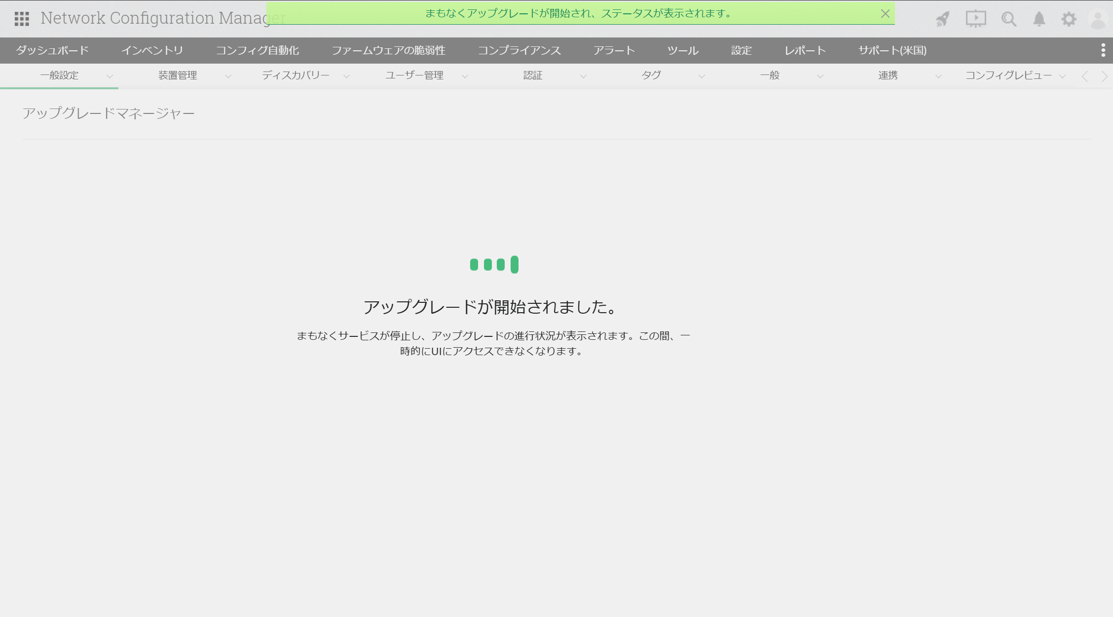 アップグレードが完了すると、[設定]→[一般設定]→[アップグレードマネージャー]のページが自動で表示されます。