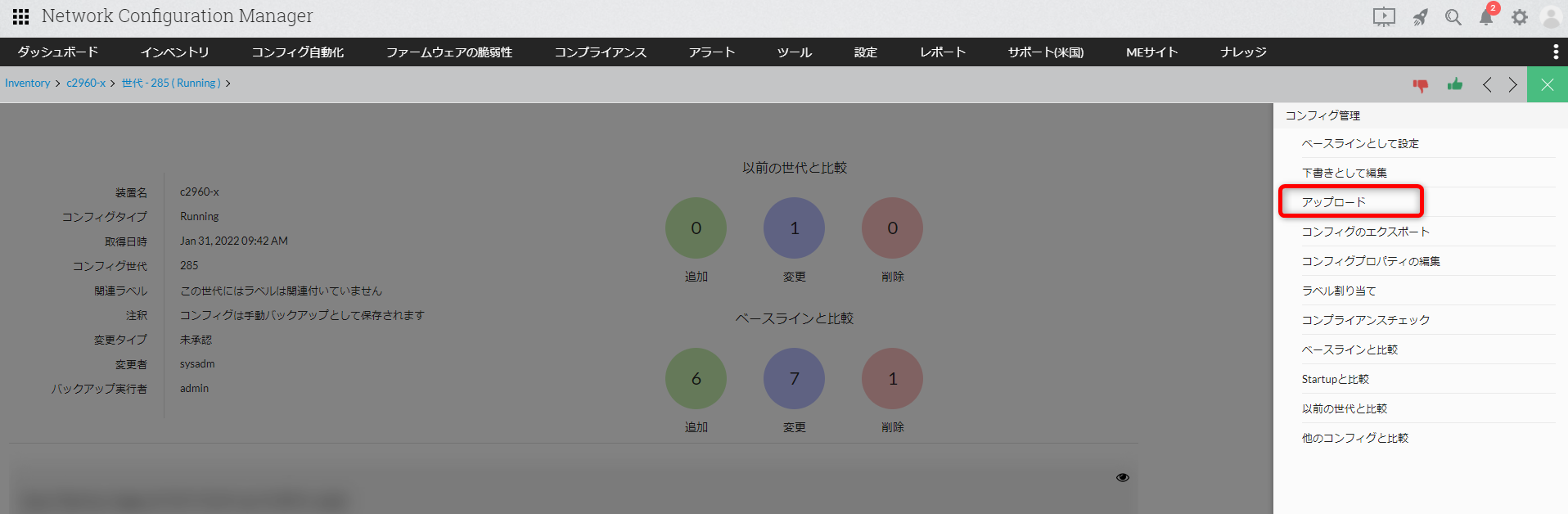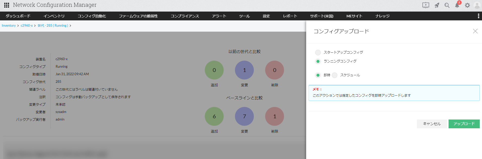 本ページでは、Network Configuration Managerで実行可能なコンフィグアップロード機能について説明します。