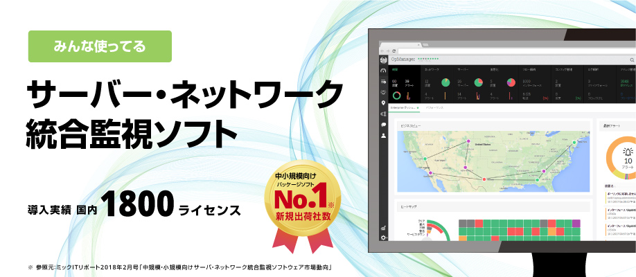 OpManagerは、マルチベンダー対応のネットワーク監視ソフトウェアです。ネットワーク管理部門・ネットワーク管理者が監視業務で網羅すべき様々な機能を、わかりやすく瞬時に把握できる画面で提供します。