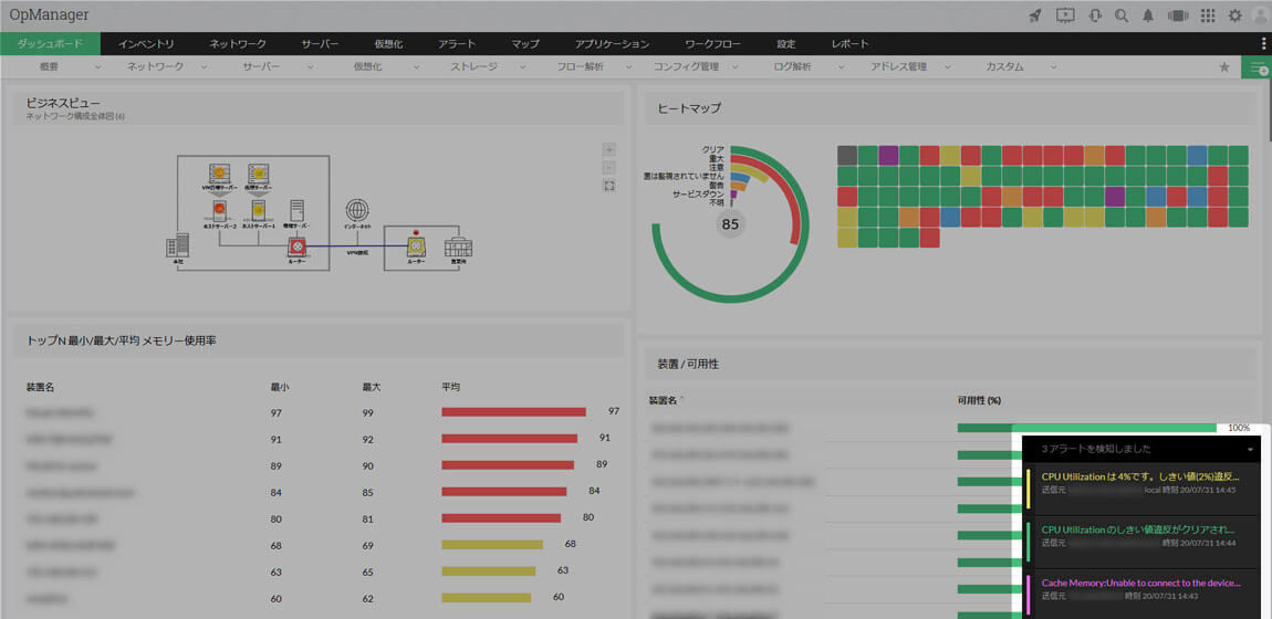 異常検知・障害検知のツールを使用してシステムを構成する重要な要素を監視することで、管理者は、エンドユーザーから通報を受ける前に自動的に問題の発生を把握し、影響が大きくなる前にいち早く対処することが大切です。