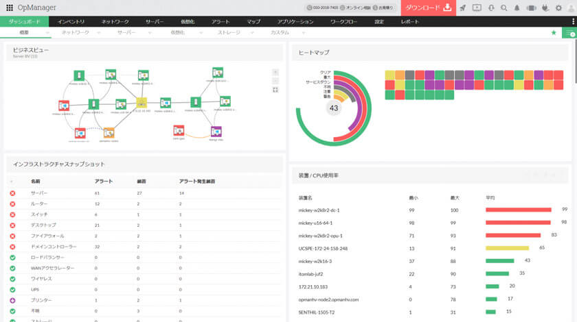 2分程度で「OpManager」の特長を紹介します。 いずれも旧UIでのご紹介となります。
