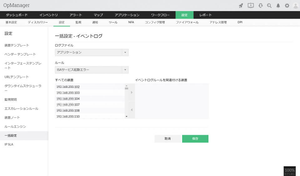 採用するイベントログルールが決まったらそれをサーバーに紐づけます。一括設定画面から複数のサーバーにまとめて設定を入れることも可能です。
