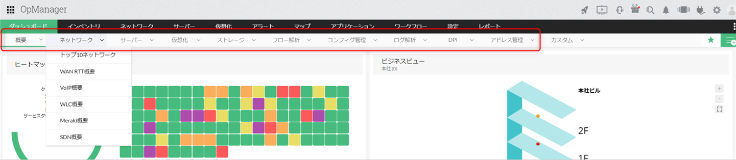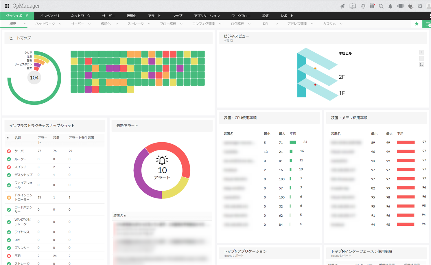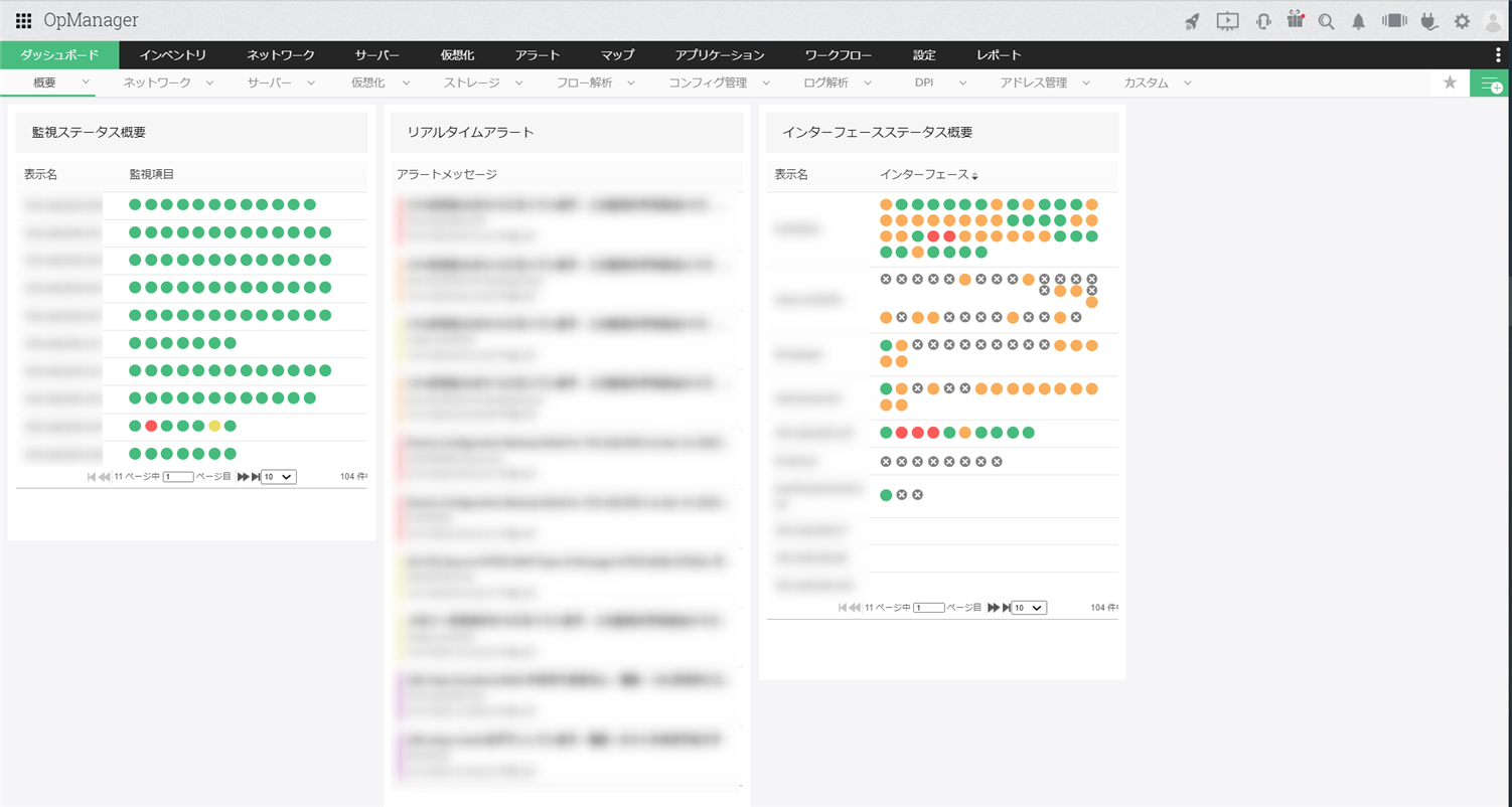 ダッシュボードは、複数のウィジェットを最適なレイアウトで表示し、OpManagerで実施している監視の概要を把握するための機能です。