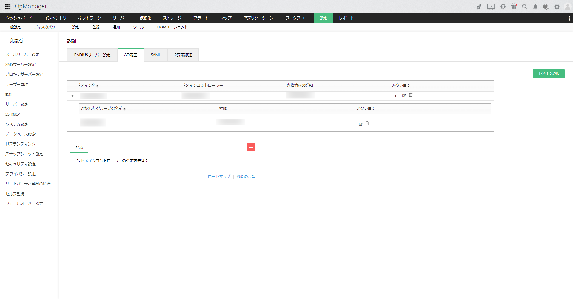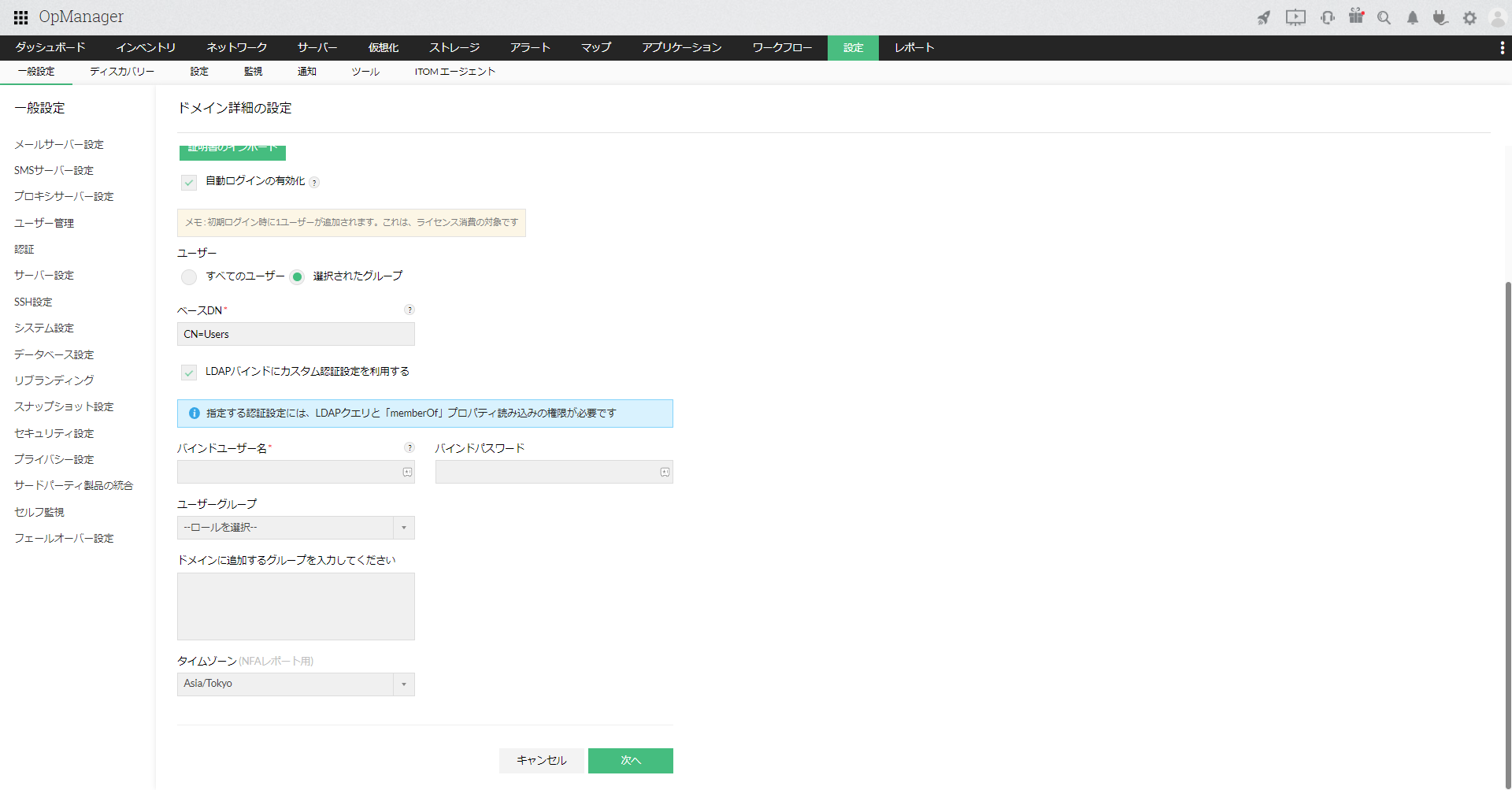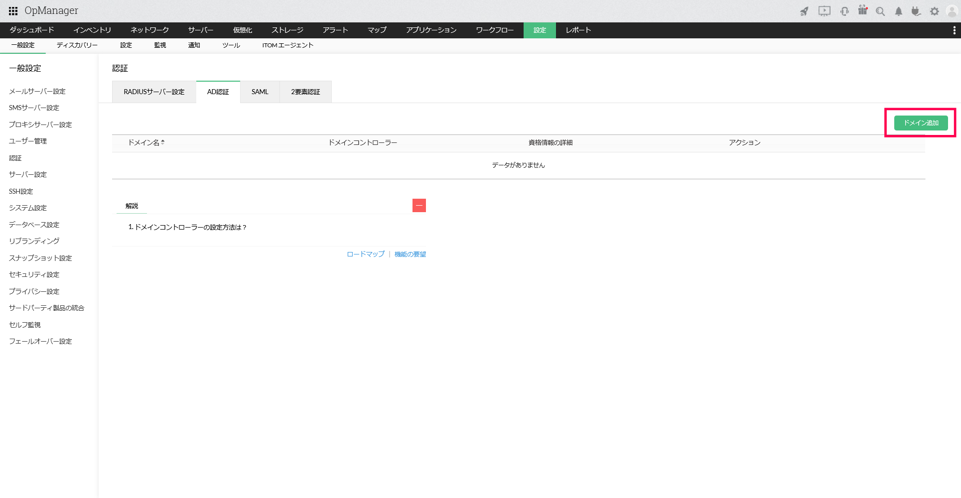 以下の手順で、OpManagerで利用するドメインを設定します。