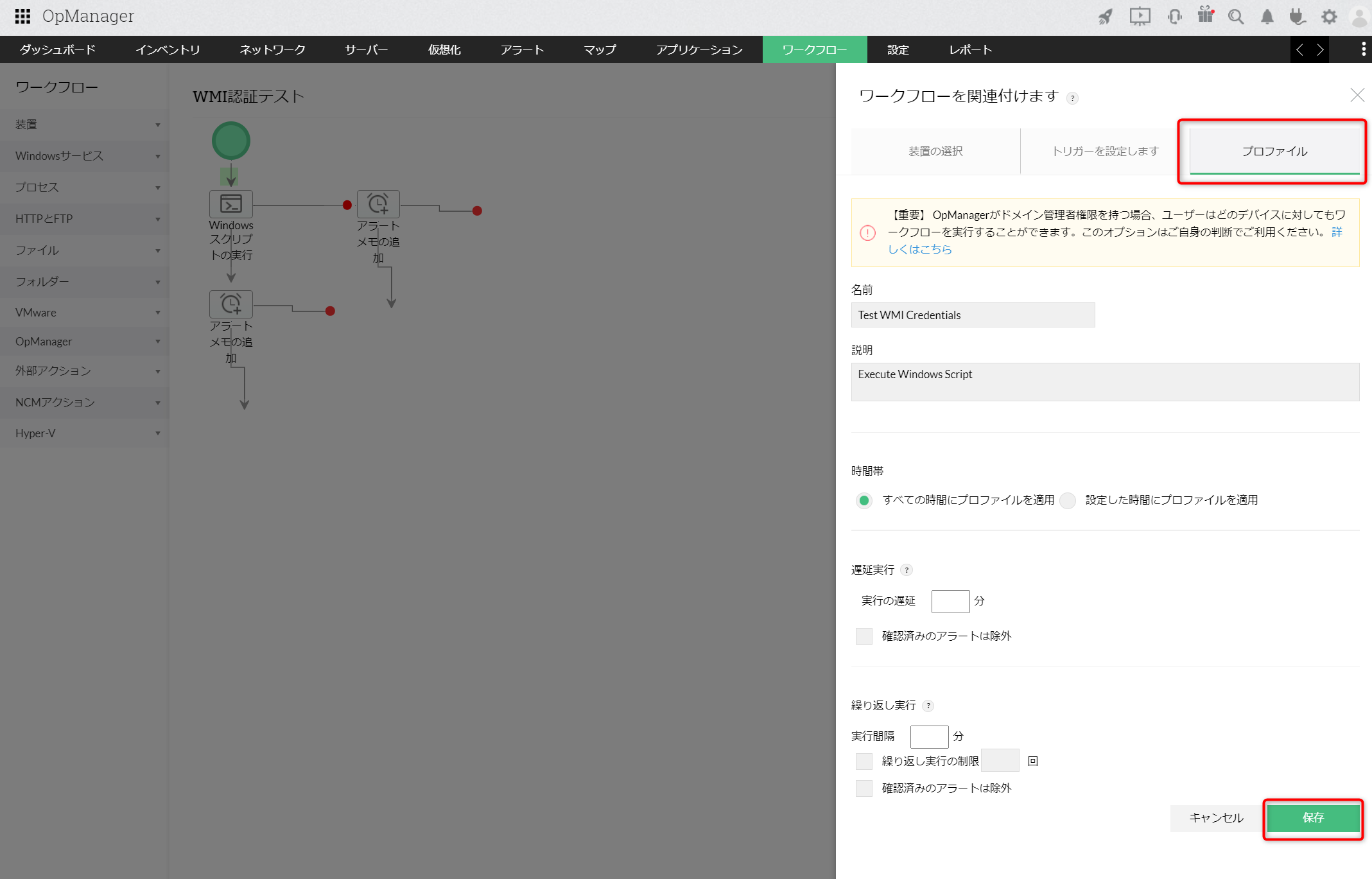 ※アラートをトリガーに指定する場合ワークフローを有効化する時間帯を指定します。