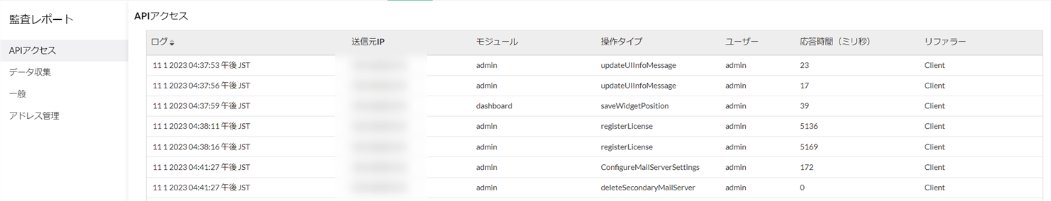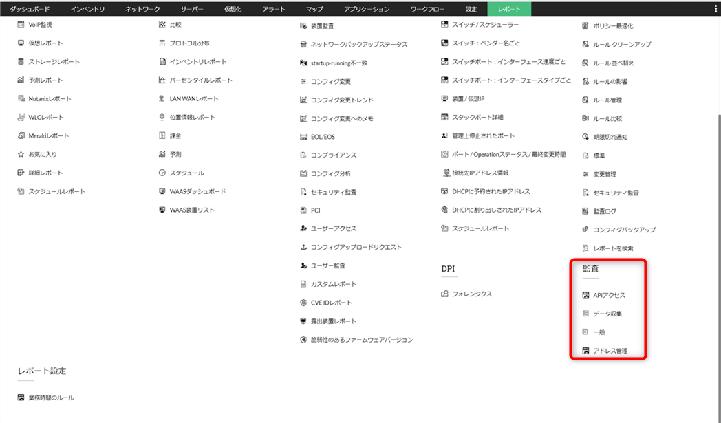 [レポート]→[監査レポート]では、製品の監査に役立つ各種情報を閲覧可能です。