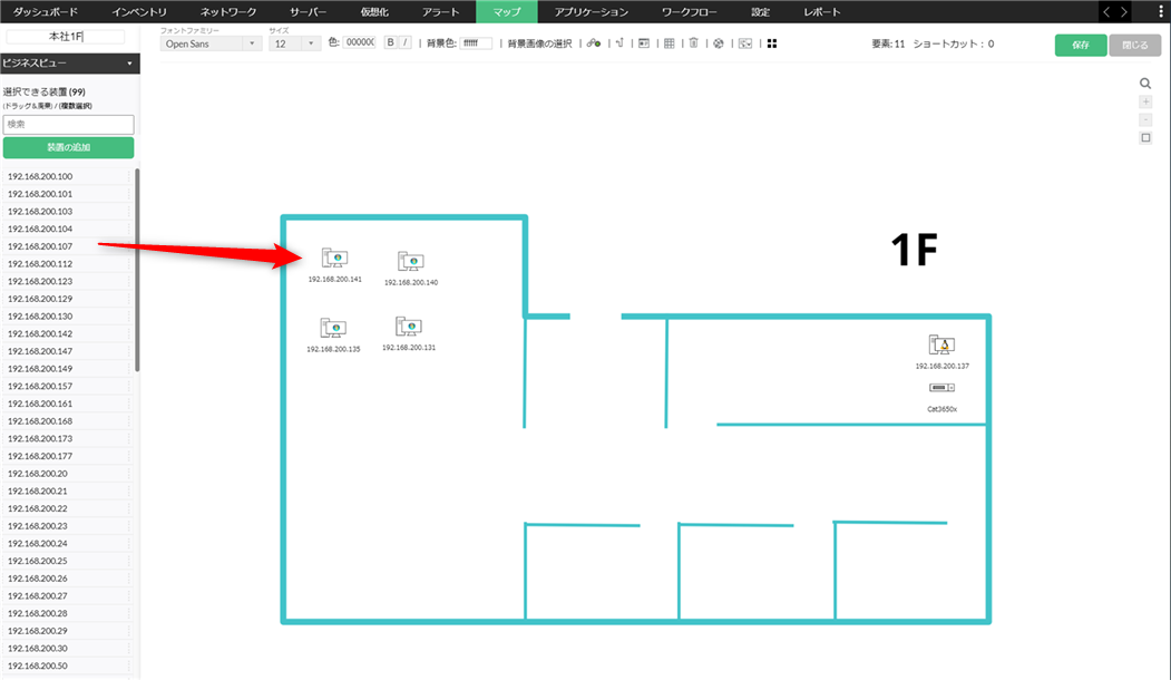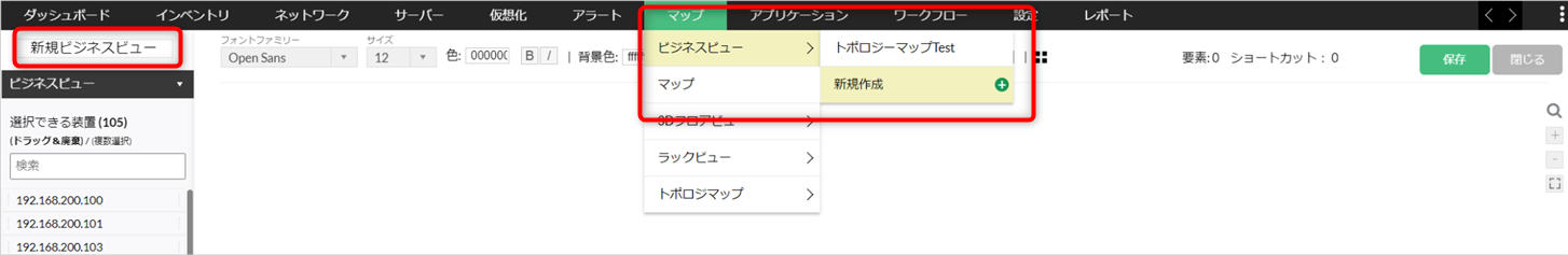 ビジネスビューはネットワーク構成図をマニュアルで作成する機能です。