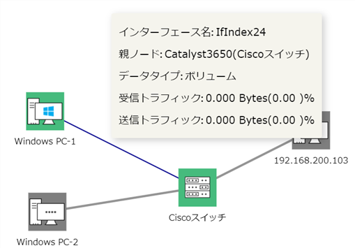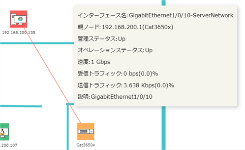作成したリンク上にマウスオーバーするとOpManagerのインターフェース監視機能で追加したインターフェースの情報が表示されます。