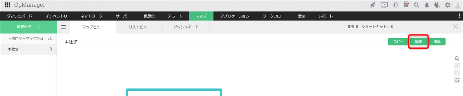 マップビューでは、作成したビジネスビューのマップを表示します。マップの管理、閲覧、編集、コピーおよび削除が可能です。