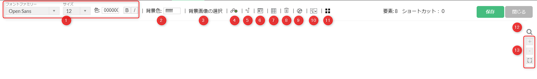 | 7.グリッド線の表示・非表示 | グリッド線の表示・非表示を変更します。 |