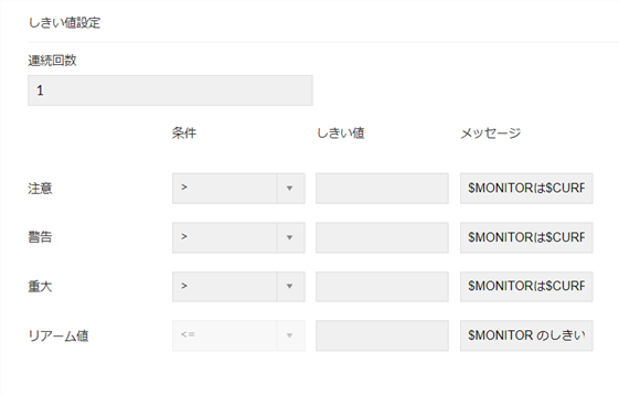 1つの監視対象に対して最大3種類のしきい値を設定することができます。