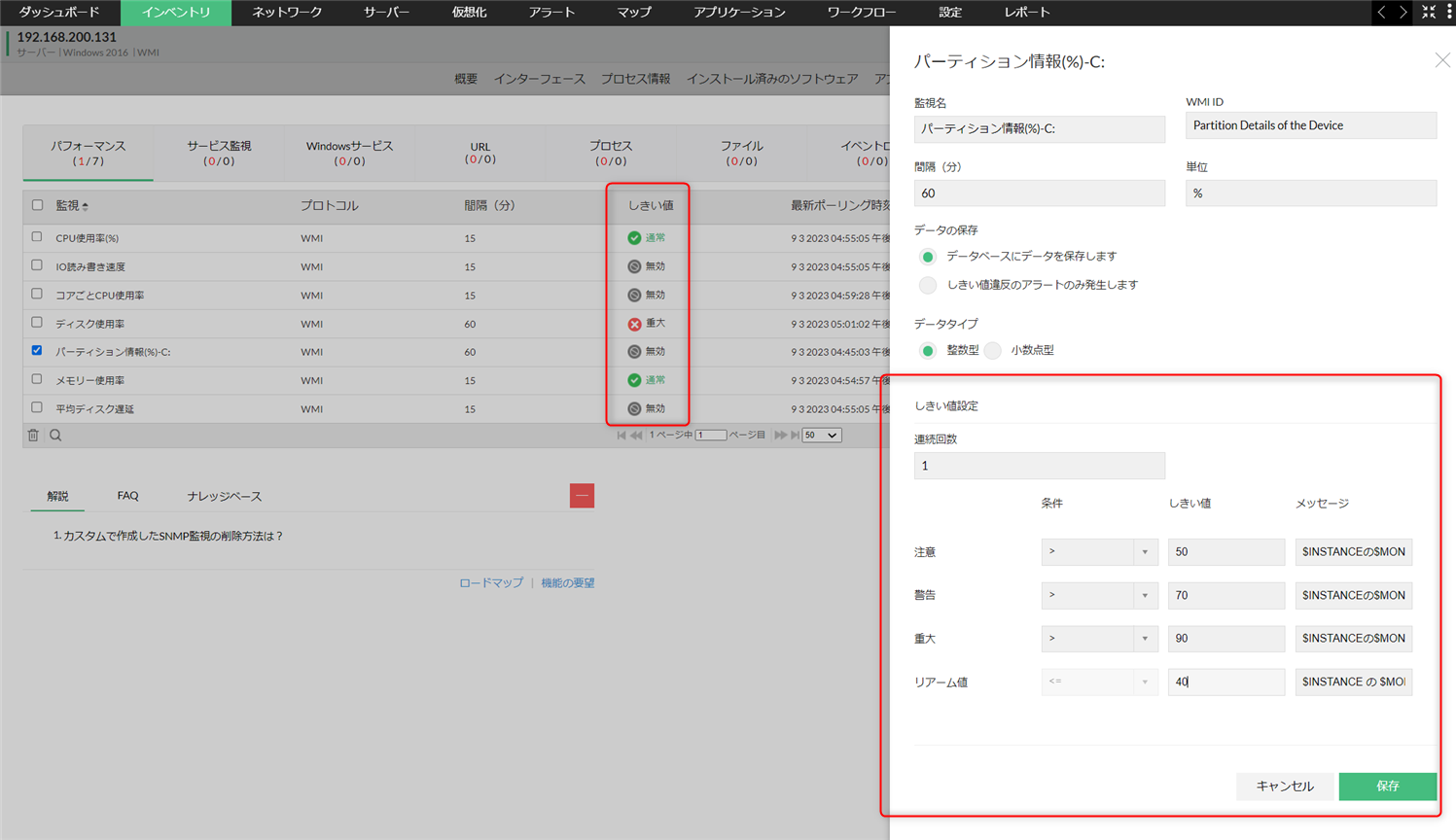 パフォーマンス監視のしきい値設定