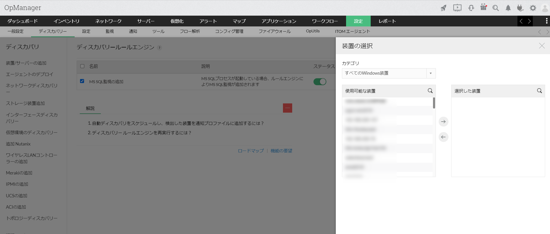 装置のディスカバリー時にディスカバリールールエンジン機能を用いることで、ビジネスビューへの追加や各種監視の追加など管理業務を自動化できます。