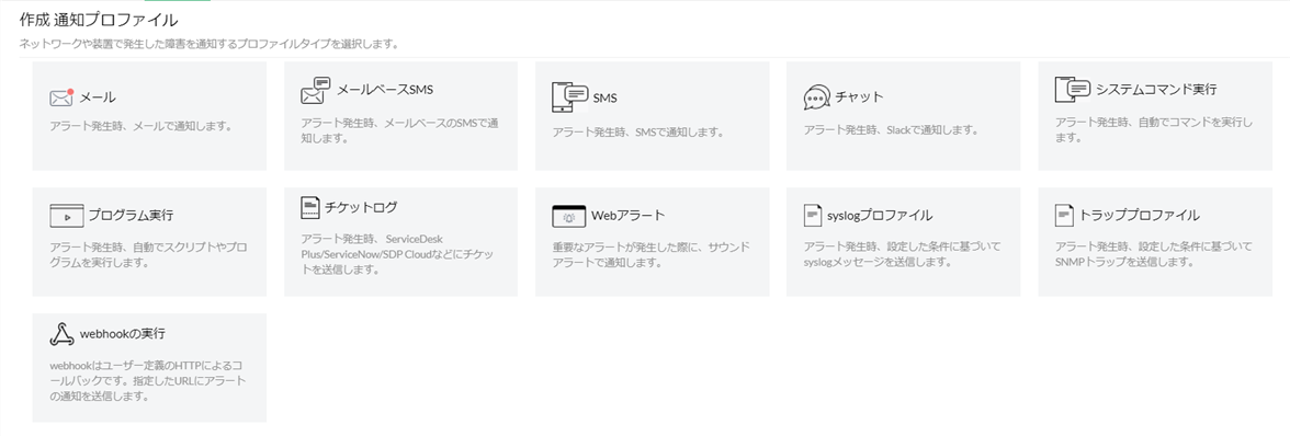 - 通知の種類と作成方法を参照し、通知プロファイルを作成