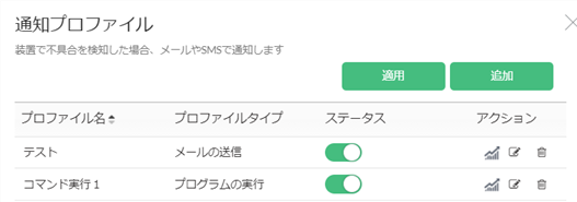 をクリックします。通知プロファイルの有効化/無効化
