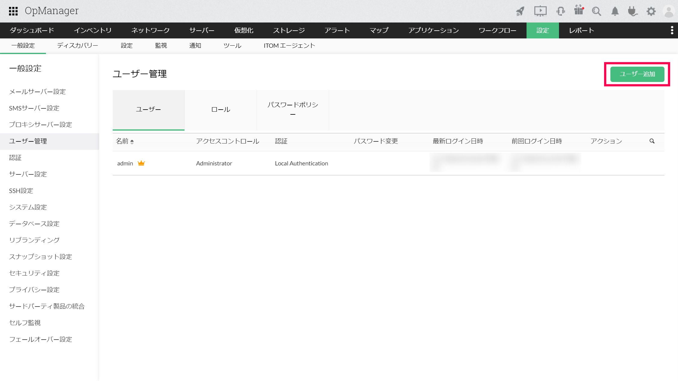 OpManagerにユーザーを追加できるのは、"管理者"のロールを持つユーザーのみです。