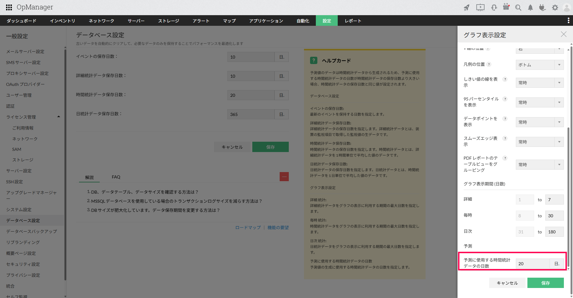 | 予測に使用する時間統計データの日数 | データの予測に使用される時間統計データの日数を設定します。 |