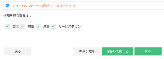 アラートクリア時にも通知を行う場合、[アラートのステータスがクリアになったとき]を選択します。