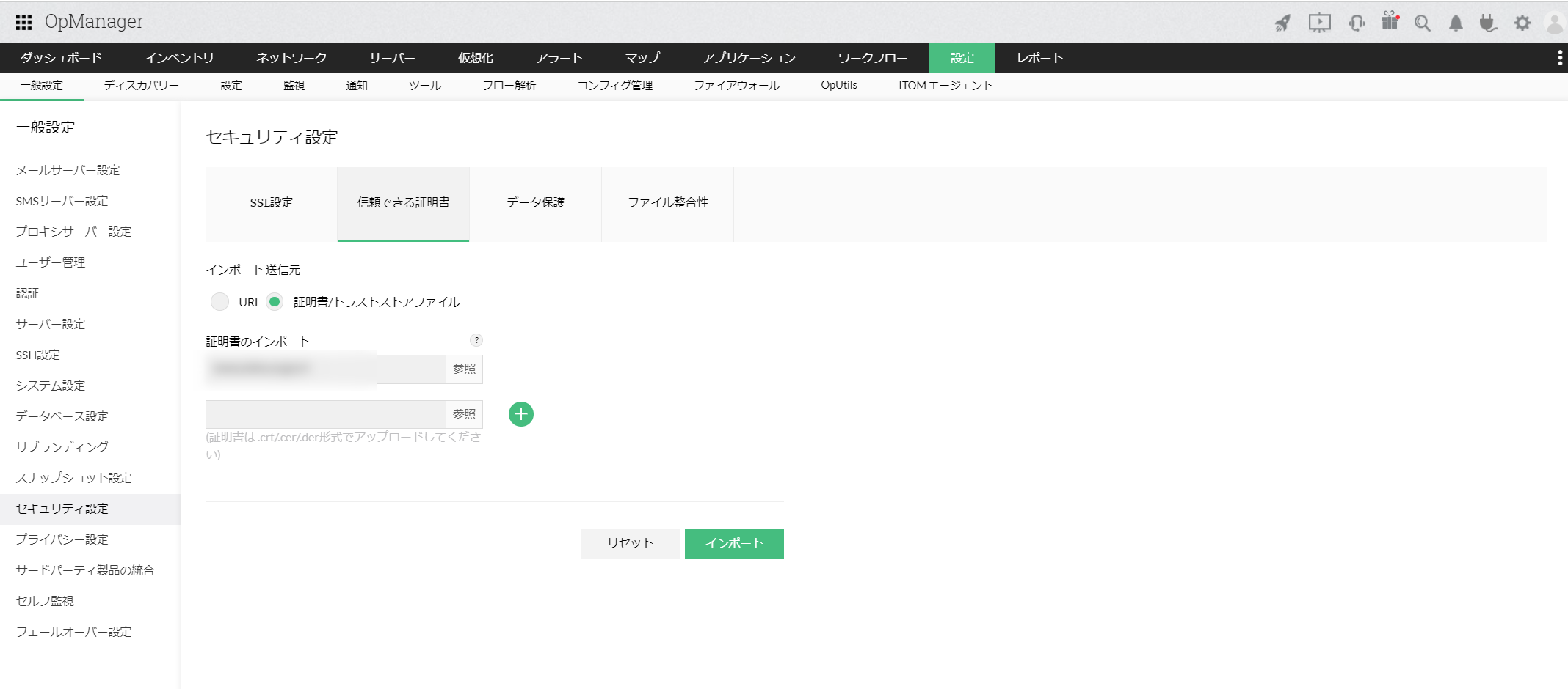 デフォルトではすべての主要なCAの署名付き証明書をサポートしておりますが、特定の証明書やサービスを信頼する必要がある場合、その証明書をOpManagerのトラストストアに追加する必要があります。