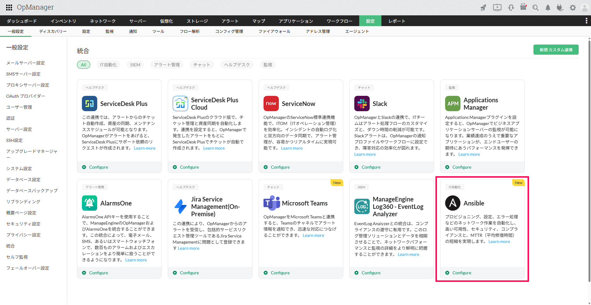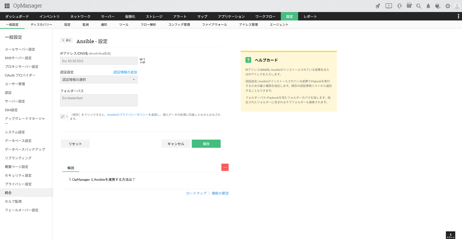 OpManagerとAnsibleを連携すると、OpManagerで発生したアラートをトリガーにPlaybookを自動で実行することができます。