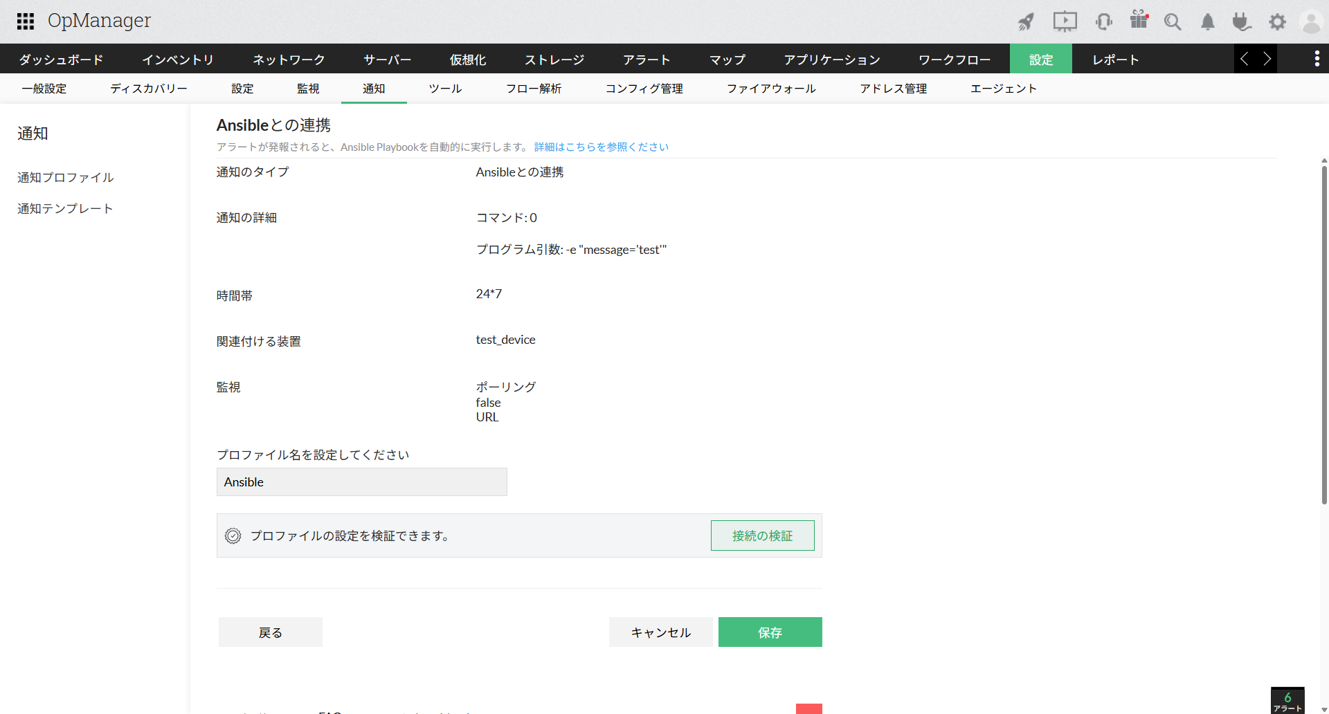 (任意)必要に応じて、[接続の検証]からAnsibleとの連携設定を検証します。