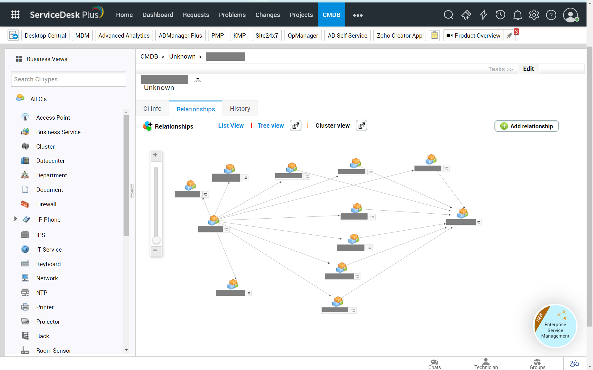 詳細はこちらもご参照ください。項目 説明 装置のSDP Cloidへの同期 有効にすると、装置情報がServiceDesk Plus(オンプレミス版)へ同期されます。 今後、新しく装置がディスカバリーされたときに同期する 有効にすると、今後新しく装置がディスカバリーされた際に、その装置が自動で同期されます。 OpManager で構成アイテム(CI)が削除された際、ServiceDesk Plus でも削除する 有効にすると、OpManagerから同期された資産情報(CI)がOpManagerから削除された場合、ServiceDesk Plus(オンプレミス版)の資産情報からも削除されます。 装置関係をServiceDesk Plusに同期する 有効にすると、同期中の装置のトポロジーマップがServiceDesk Plus上で描画されます。