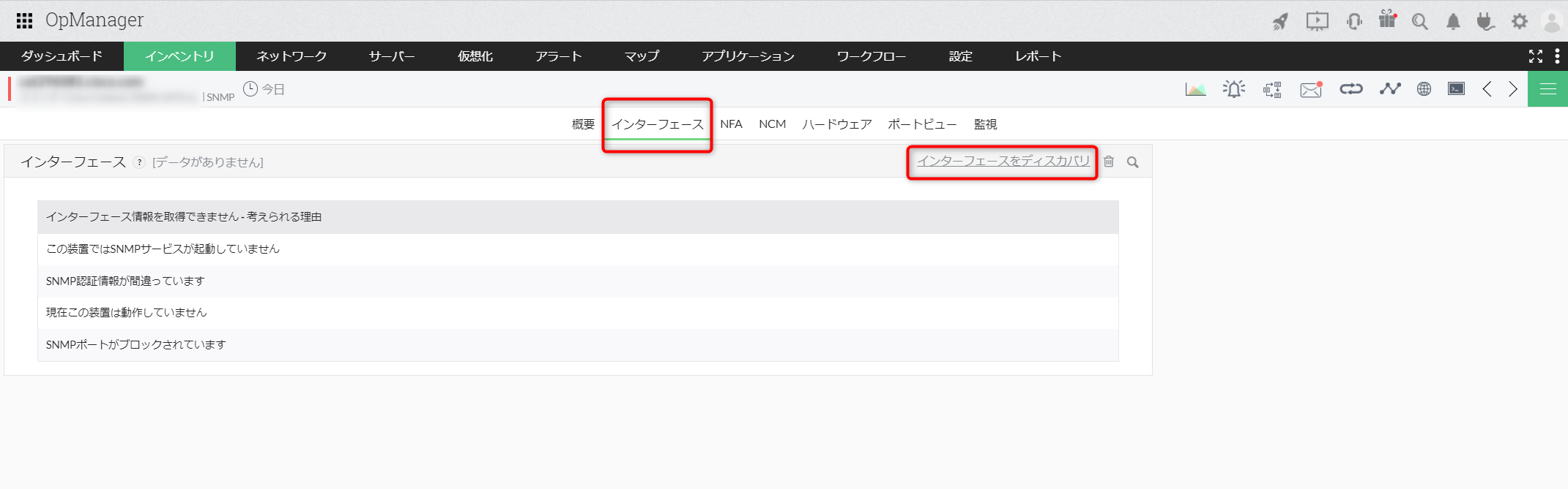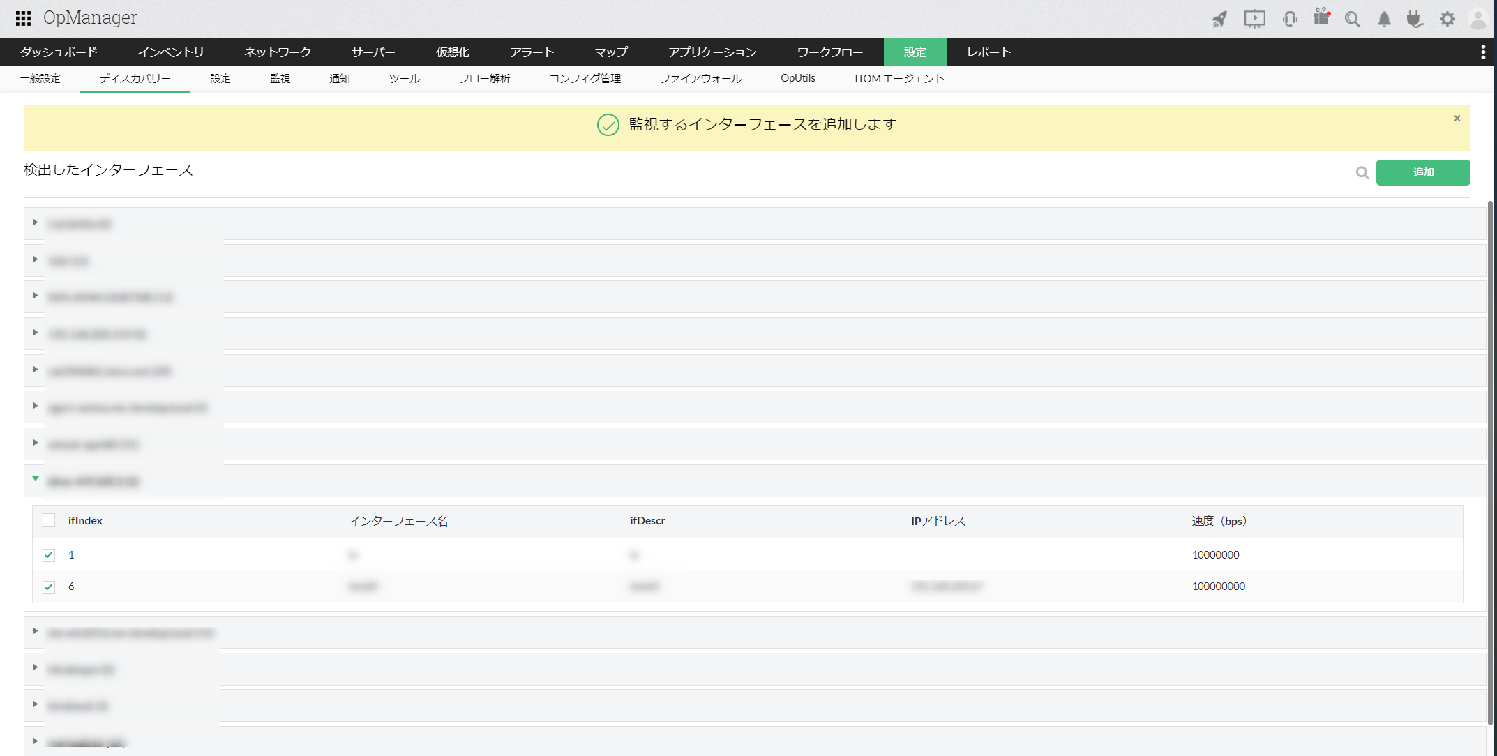 インターフェースをディスカバリーすることで、インターフェース監視が可能です。