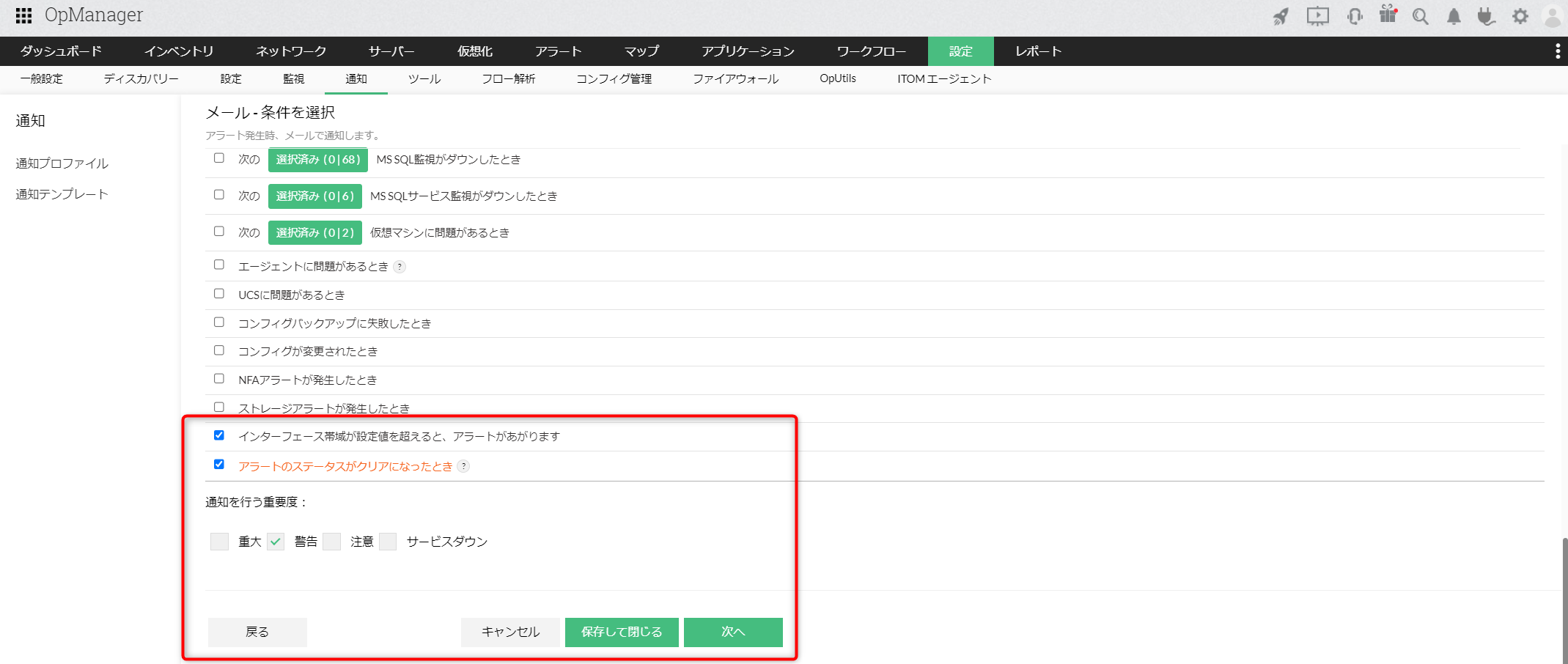 - [インターフェースまたはスイッチのポートに問題があるとき]から通知対象とするインターフェース名