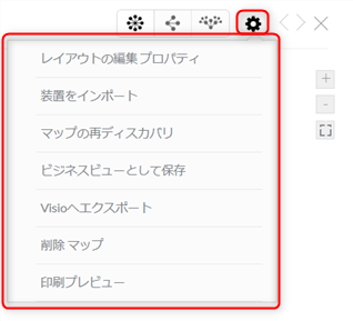 | Visioへエクスポート | トポロジーマップをVisioへエクスポートします。 エクスポート時の制限事項についてはこちらをご確認ください。 |