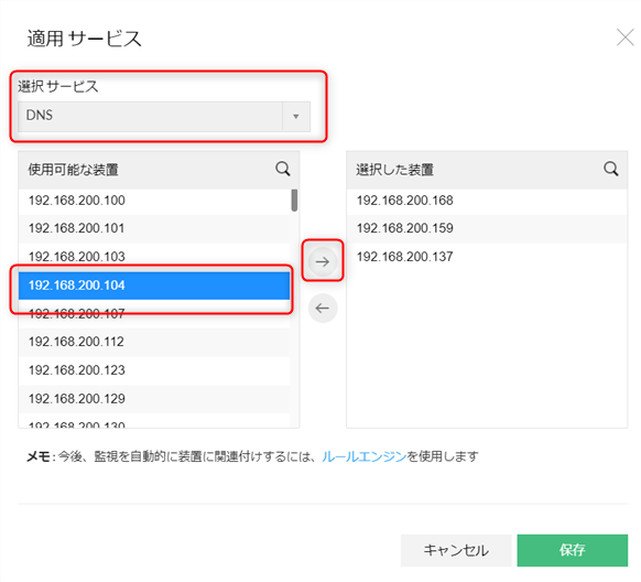 - 適用する装置を[使用可能な装置]から[選択した装置]へ移動し[保存]をクリックします。
