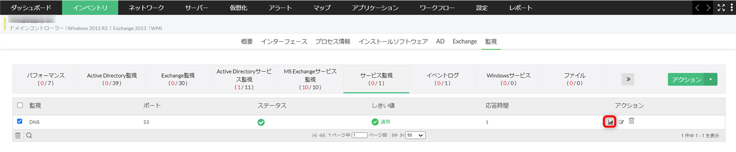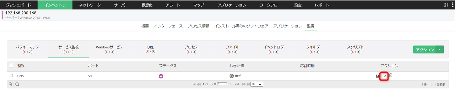 - [設定]→[監視]→[サービス]より編集対象のサービス名をクリックします。