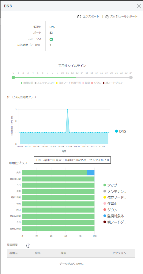 TCPサービス監視は、TCPサービス(ポート)の可用性と応答時間を監視します。