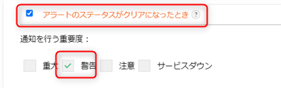 アラートクリア時にも通知を行う場合、[アラートのステータスがクリアになったとき]を選択します。