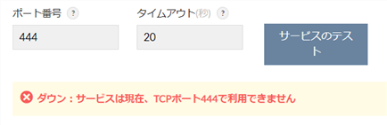 項目 説明 サービス名 サービス名を入力します。 ポート番号 サービスが稼働するTCPポート番号を指定します。 タイムアウト タイムアウト値を指定します。 サービスのテスト 設定したポート番号とタイムアウトに基づいてポーリングをテスト実行できます。