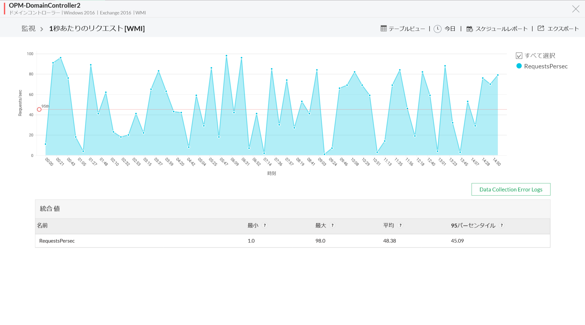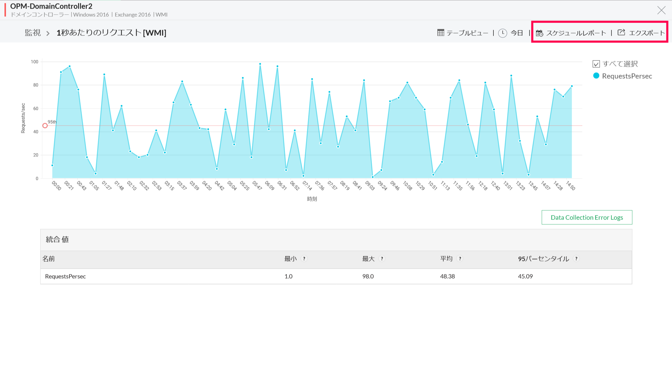 Exchangeのパフォーマンス監視で収集したデータは、グラフまたはレポートで閲覧することができます。