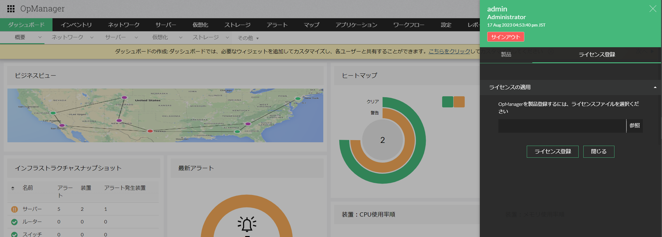 - OpManager Plusを購入後、初めてライセンスを適用する場合