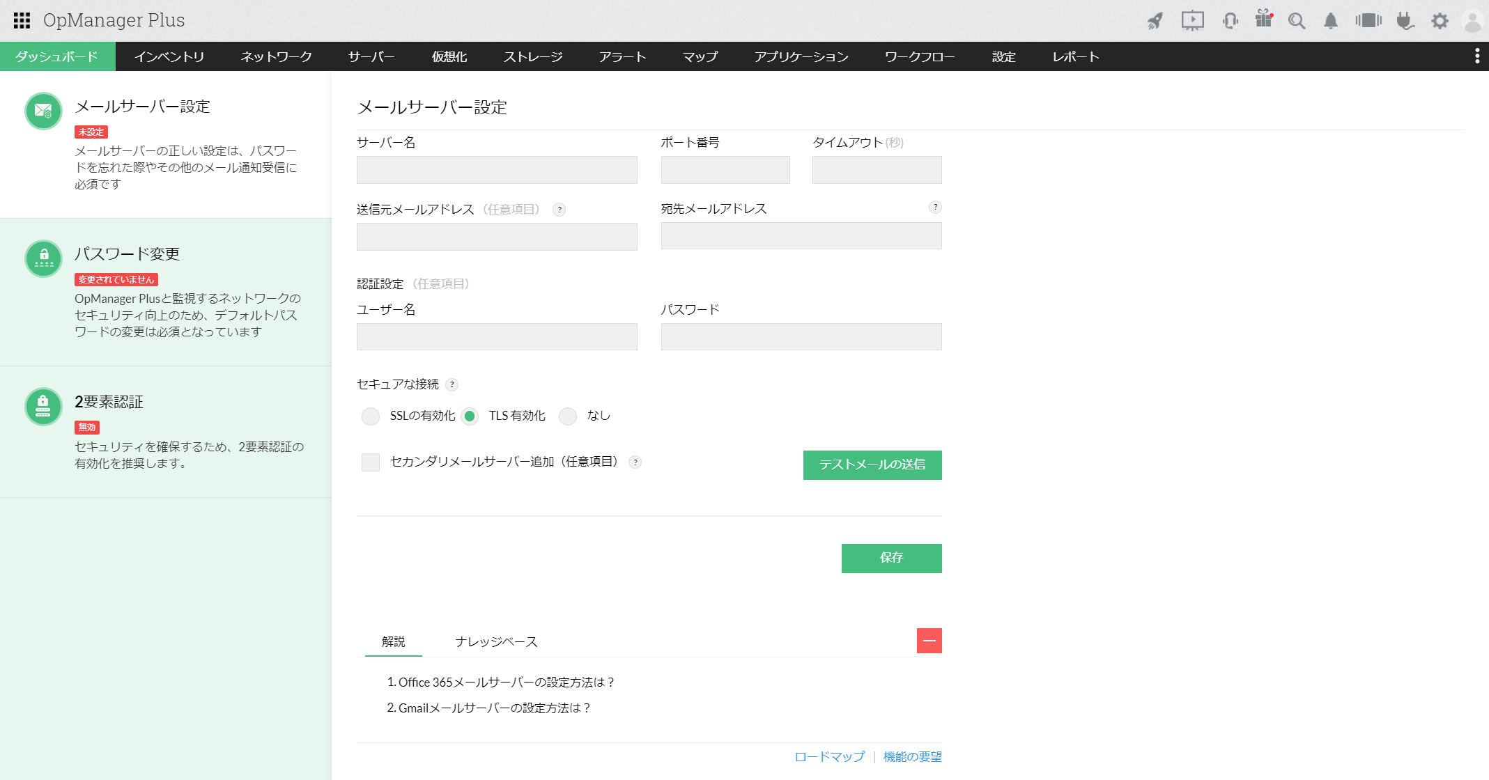 詳細はこちらをご確認ください。 - ビルド12.8.407未満かつメールサーバーを設定していない場合、メールサーバー設定を行う必要がございます。