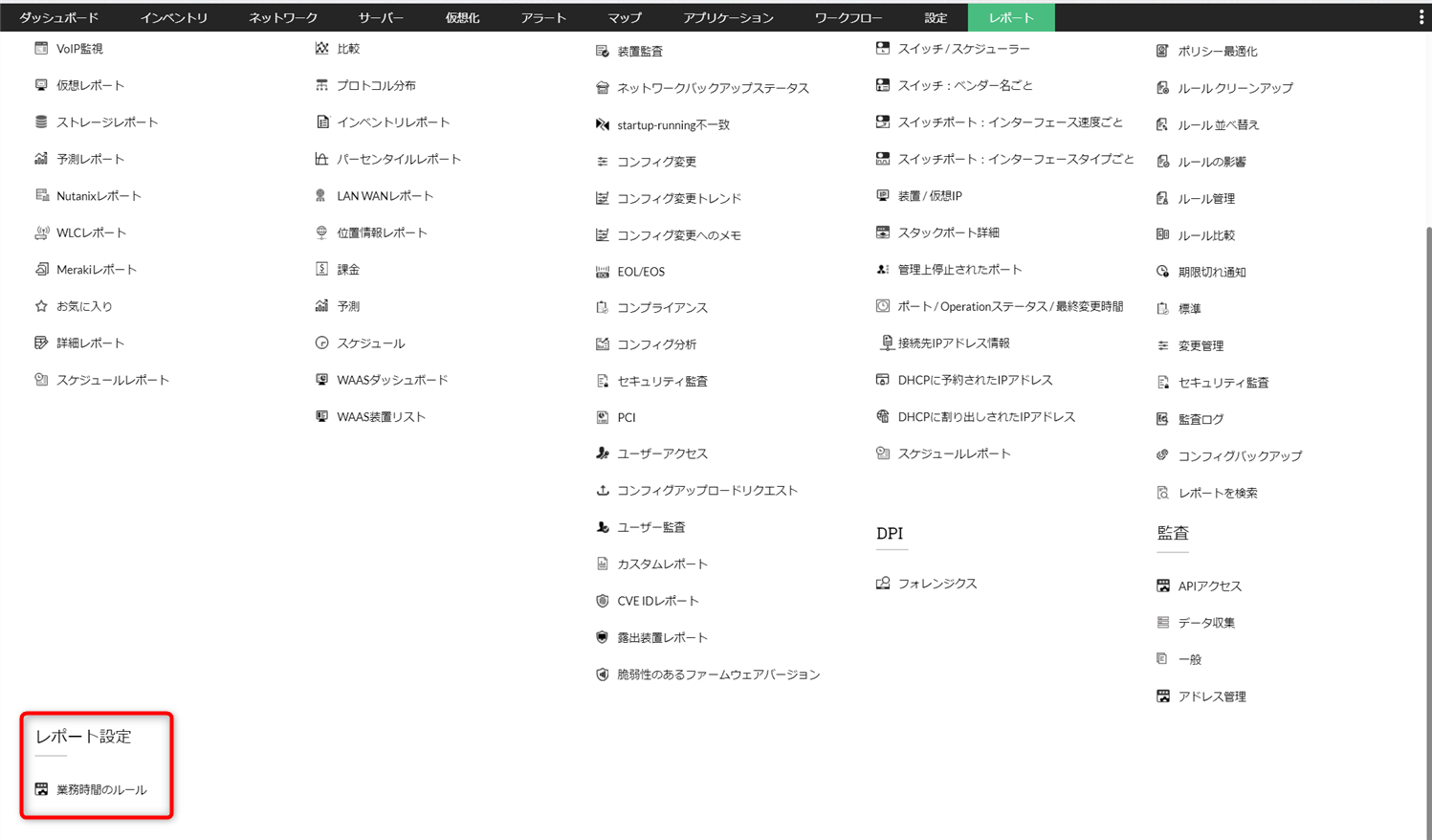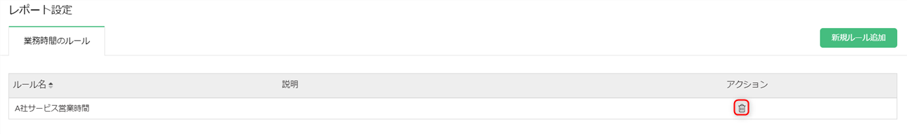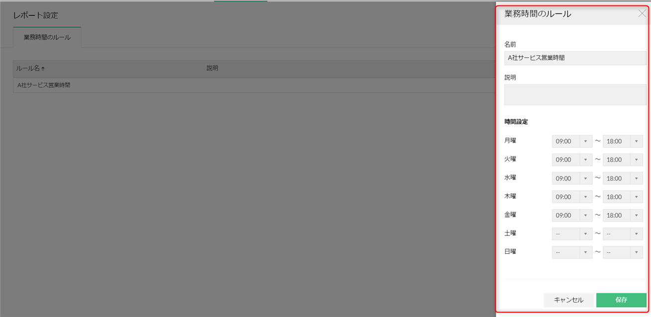 [レポート]→[レポート設定]では業務時間のルールを設定します。