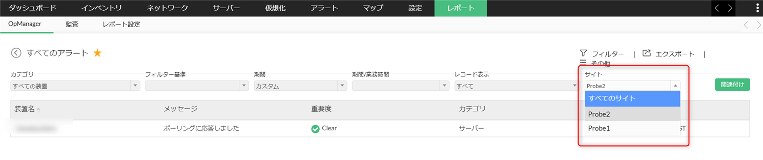 レポート編集時にフィルターの条件[サイト]で[全てのサイトを表示]を選択できます。