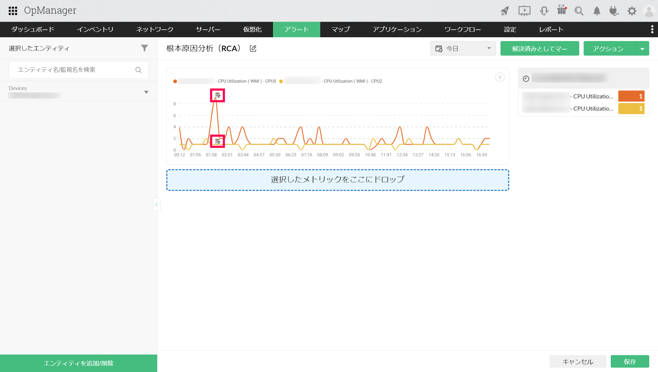 RCAプロファイルに含めるエンティティを選択したら、そのエンティティが持つ監視データをグラフに表示します。