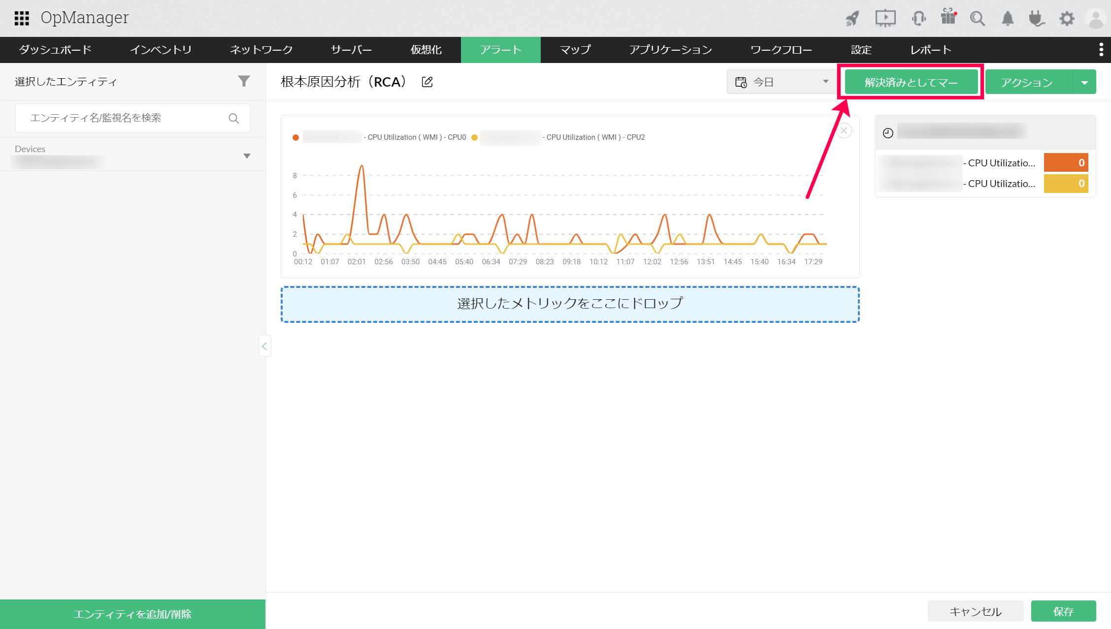 RCAプロファイルを作成するアラートを、[アラート]や装置の概要画面から選択し、アラートの詳細画面に移動します。
