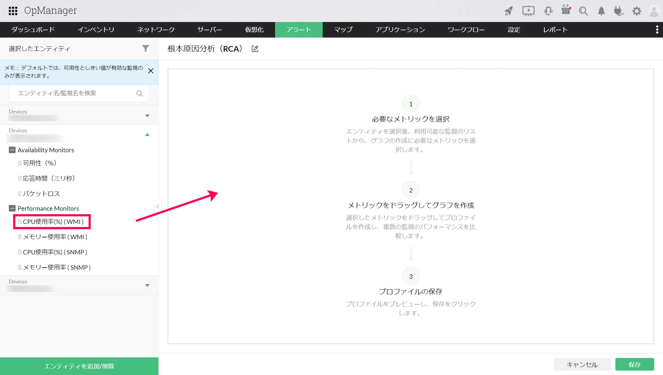 装置やインターフェース、URL監視についてのRCAプロファイルは、以下の手順で作成/管理できます。