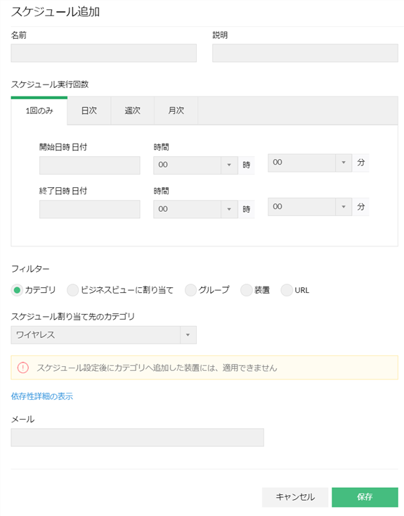開始日時と終了日時を指定します。日次 指定した日から毎日スケジュール実行を行います。