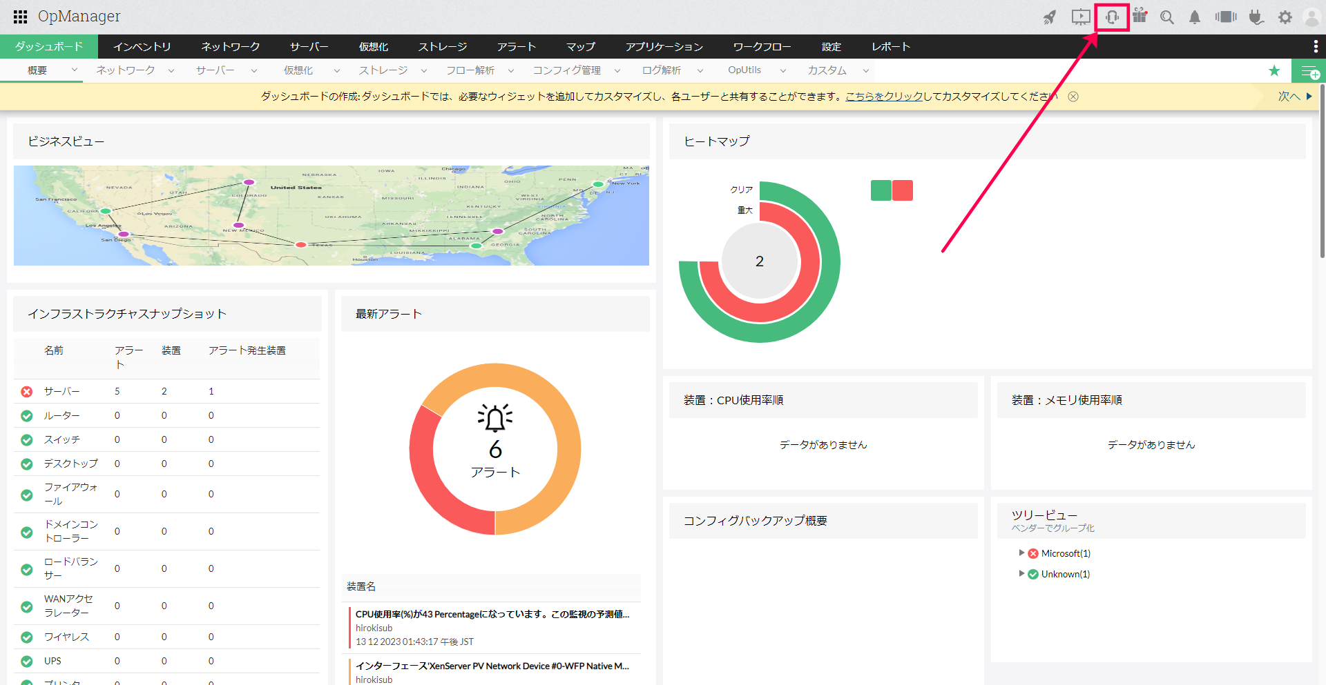 - 画面右上のヘッドセットのアイコン(サポートアイコン)をクリックします。