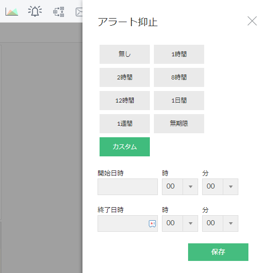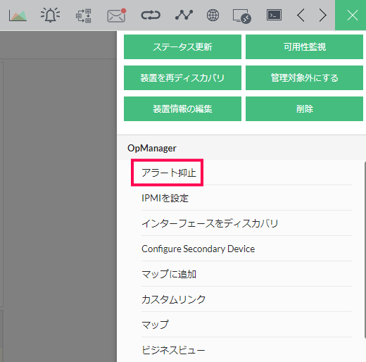 アラートの抑止は、特定の装置に対して監視を継続したまま、一定期間アラートの発生を抑制する機能です。