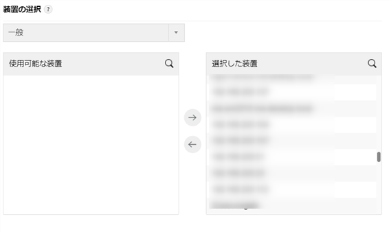 選択したカテゴリに分類される装置のみを表示します。 設定対象にする装置を[使用可能な装置]から[選択された装置]に配置します。 |