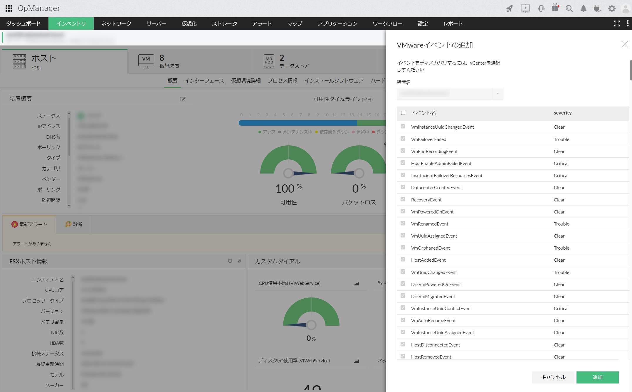 - [仮想化]から、追加するイベントの参照元とするvCenter/ESXサーバーをクリックし、装置の概要ページに移動します。