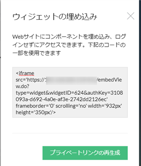 をクリックすることで、そのウィジェットを表示するコードを生成できます。