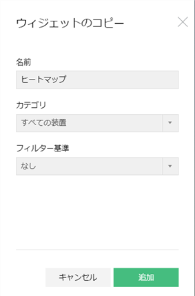 - ウィジェット一覧からウィジェットを選択し[追加]をクリックします。
