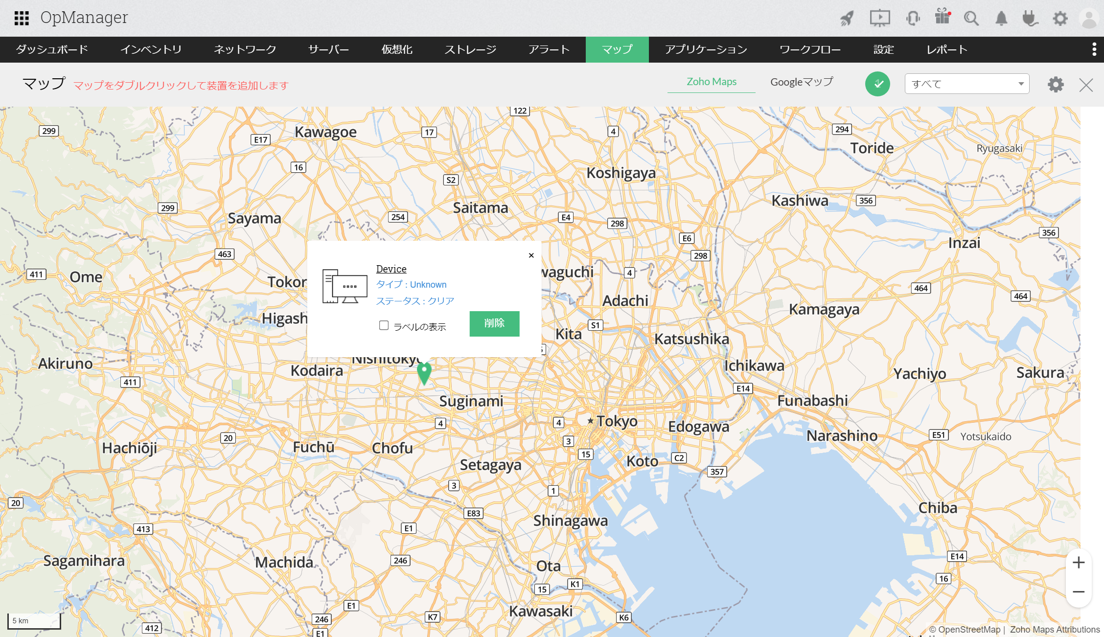 [削除]をクリックすると、その装置がマップから削除されます。